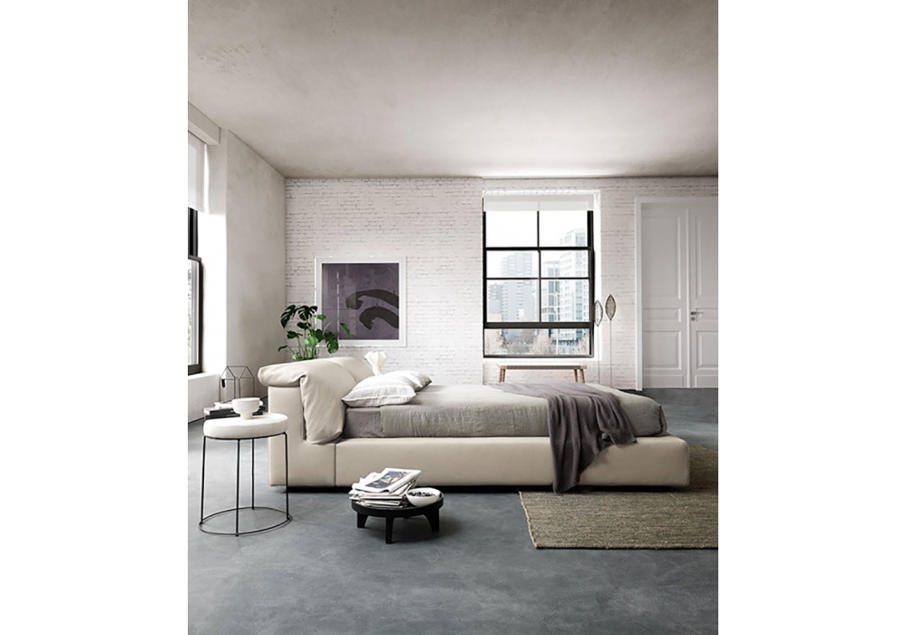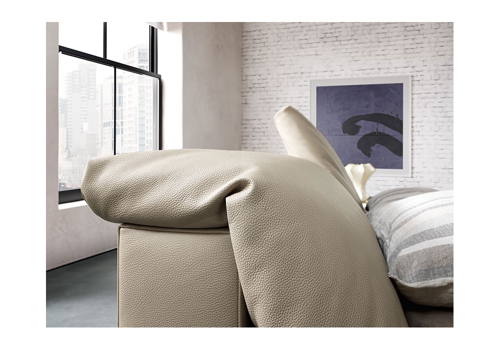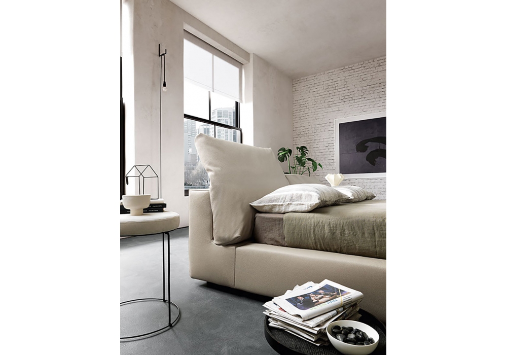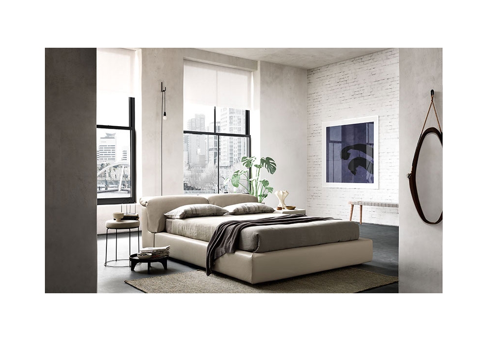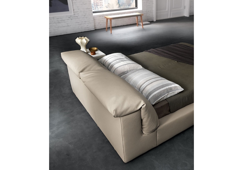 William designed and produced by Valentini is a bed with wooden structure covered in polyurethane, with orthopedic top with wooden slats. Available in various sizes and in different finishes, completely removable fabric and leather.