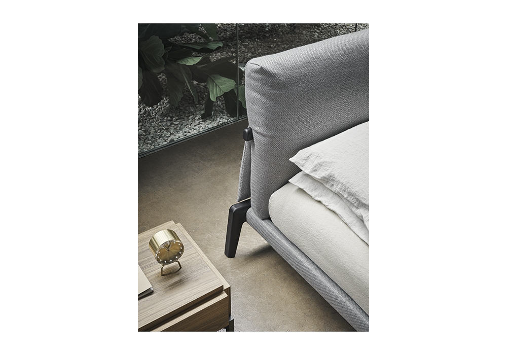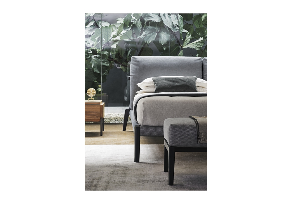Kriss designed by Maurizio & Silvia Varsi for Bonaldo is a bed with internal structure in wood, padded headboard in polyurethane foam of various densities and bed frame in solid wood with visible shaped feet. The cover is removable and available in different fabrics and colors. The bed is made in various sizes.
