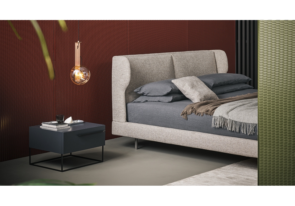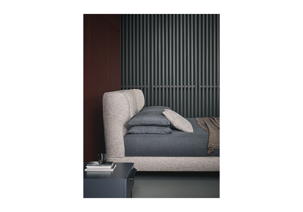 River designed and produced by Bonaldo is a bed with internal wooden structure, headboard and bed frame upholstered in shaped polyurethane foam. The cover is removable and available in different fabrics and colors. The feet are in matt painted metal in various finishes. The bed is made in various sizes and versions.