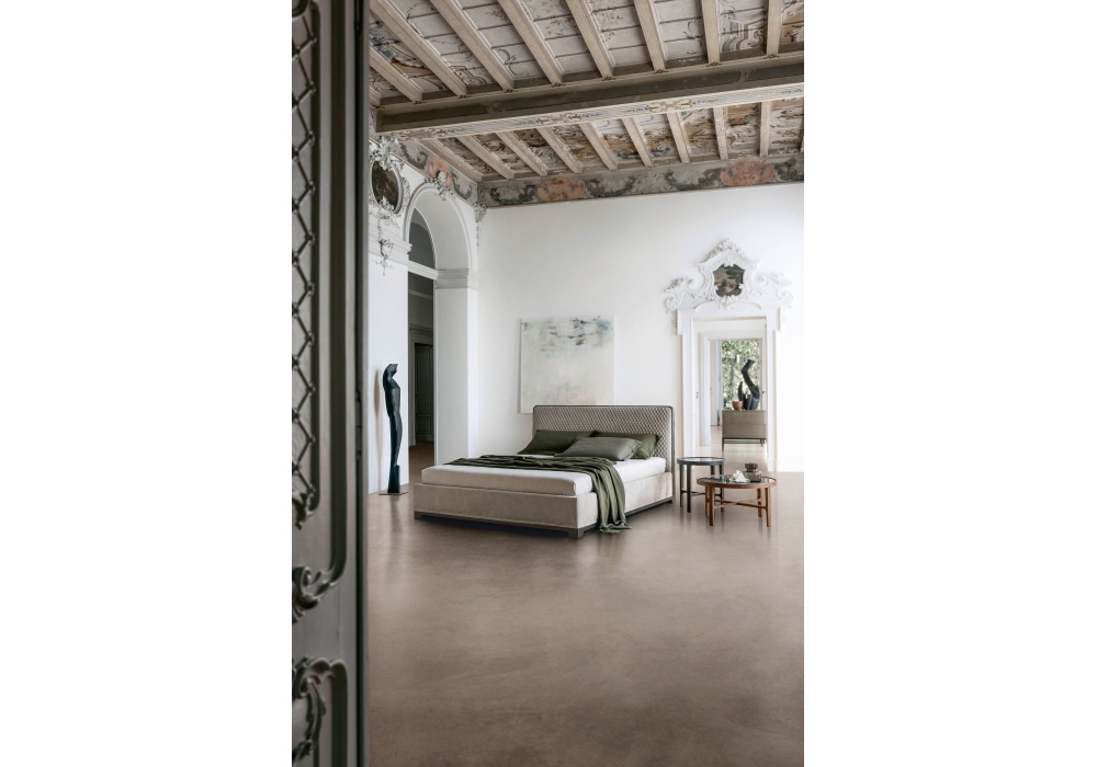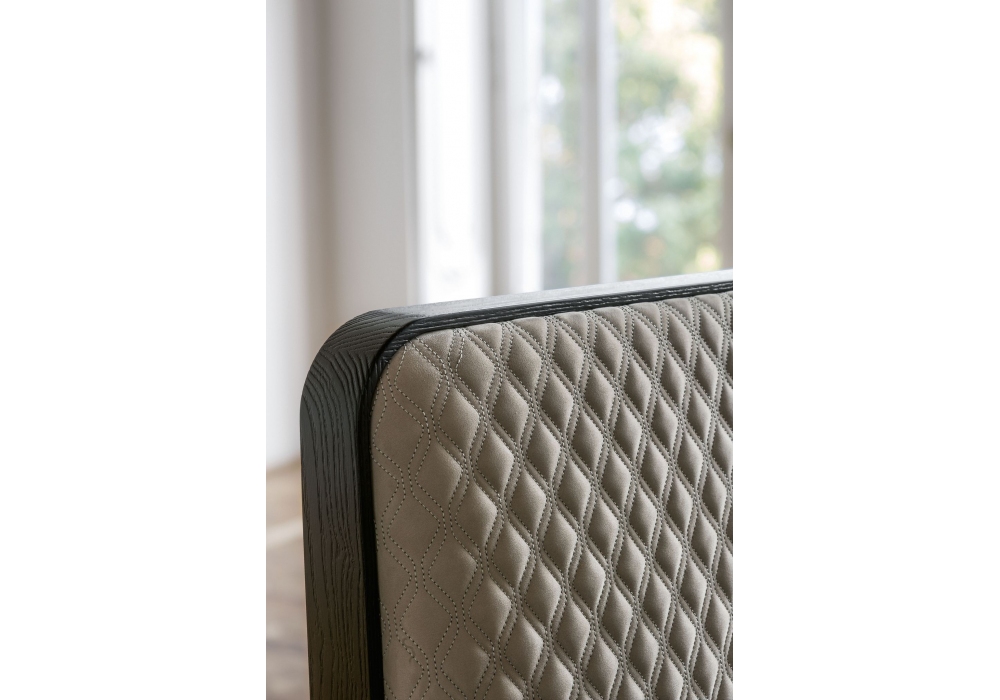 Bali designed by Giuseppe Bavuso for Alivar is a bed made with base in solid painted ash or national walnut and wooden headboard padded with differentiated density polyurethane foam with polyester fiber lining, with wooden or upholstered structure. Bed frame in fir plywood covered with polyurethane foam and coupled interliner. Front headboard upholstery in quilted leather with exclusive Alivar design. Base in birch plywood with curved slats with stiffness adjusters in the lumbar area. Also available in the version with container with liftable base.