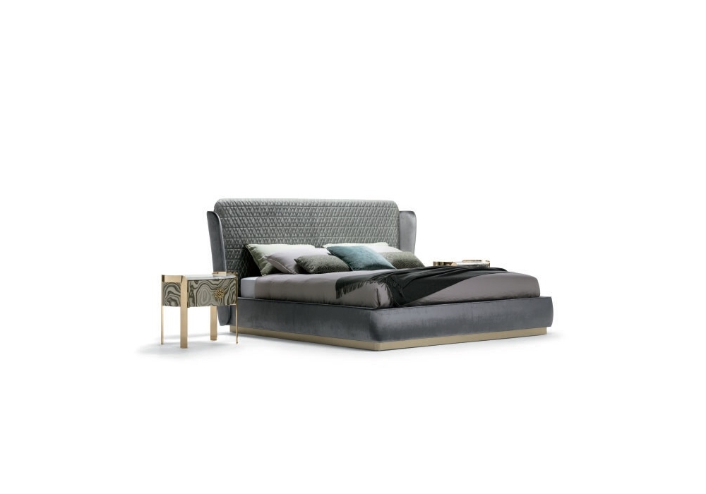 Janet designed by Castello Lagravinese Studio for Opera Contemporary is a bed made with a beech wood base and fabric or leather upholstery. Bed frame with removable upholstery only if in fabric.