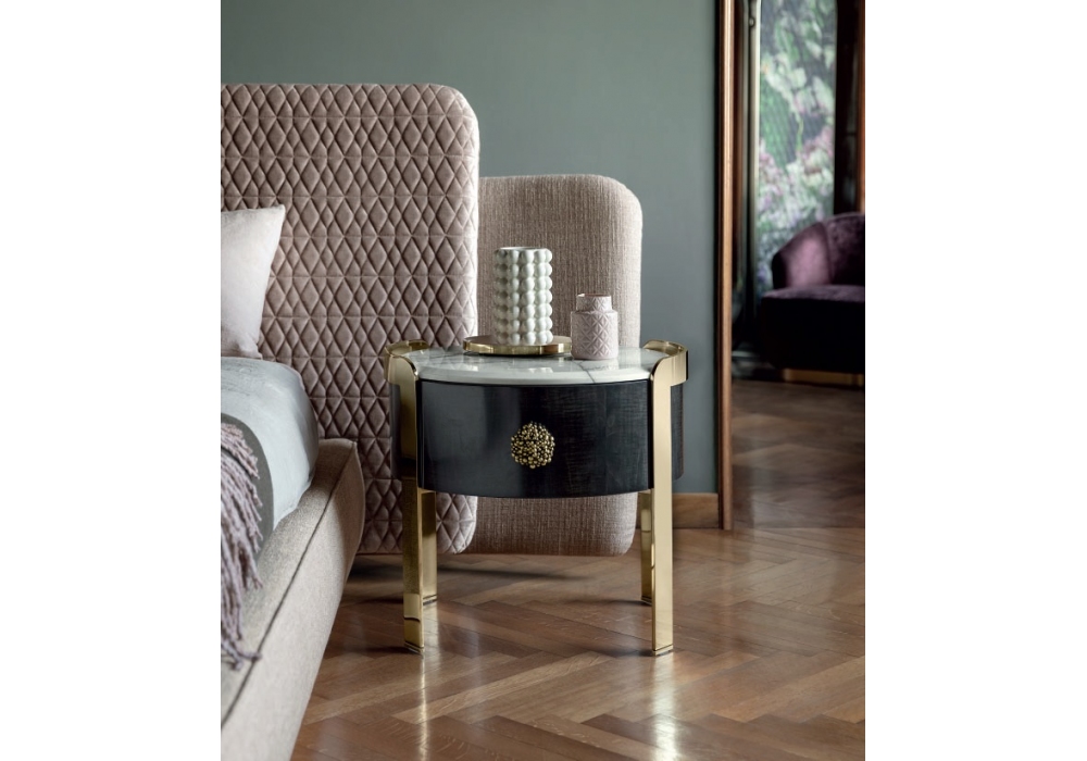 Sheila designed by Castello Lagravinese Studio for Opera Contemporary is a bed made with a beech wood base and fabric or leather upholstery. Bed frame with removable upholstery only if in fabric.