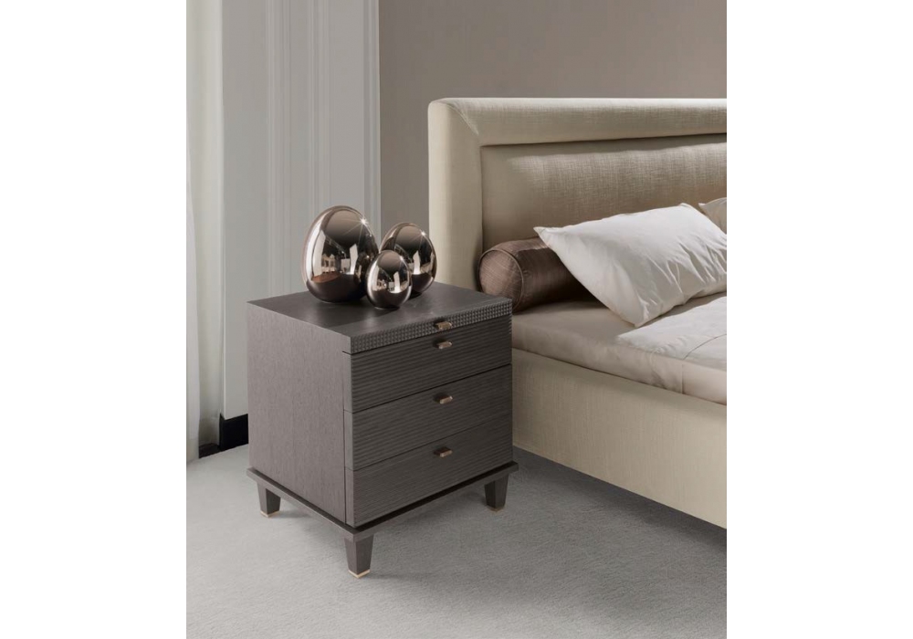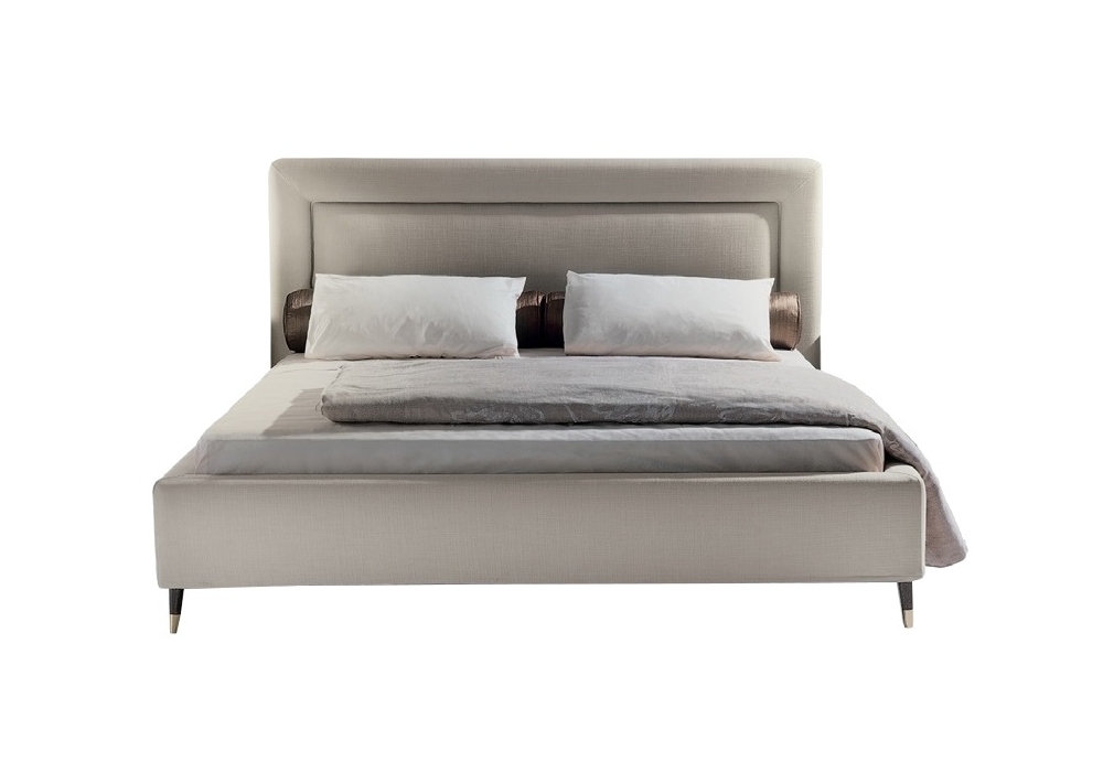 Ramiro designed by Opera Contemporary is a bed with fabric or leather upholstery and ash wood feet with metal tips. Available in different finishes and dimensions.