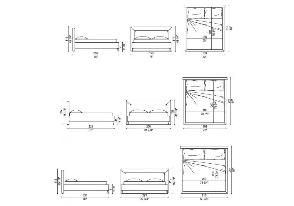 | Construction material | 165 x 195 cm; 180 x 200 cm; 200 x 200 cm. |