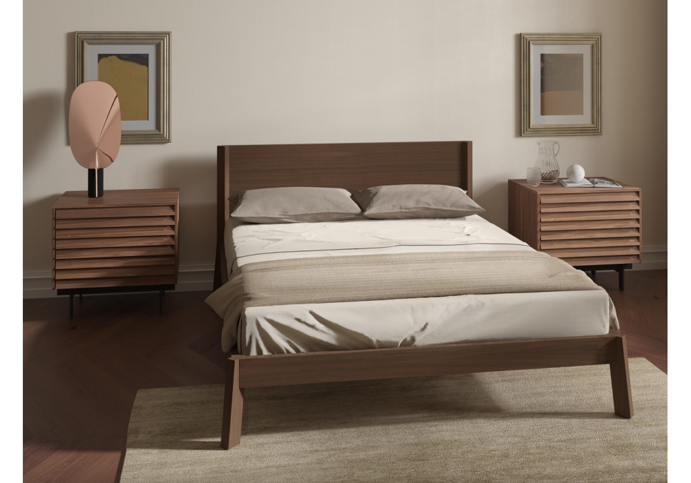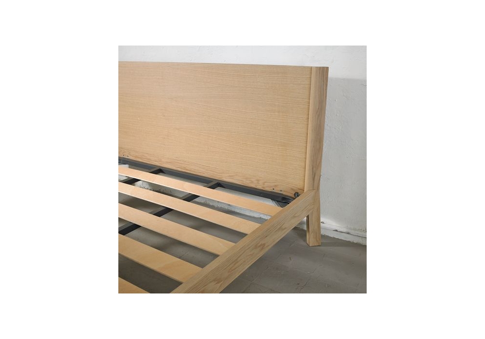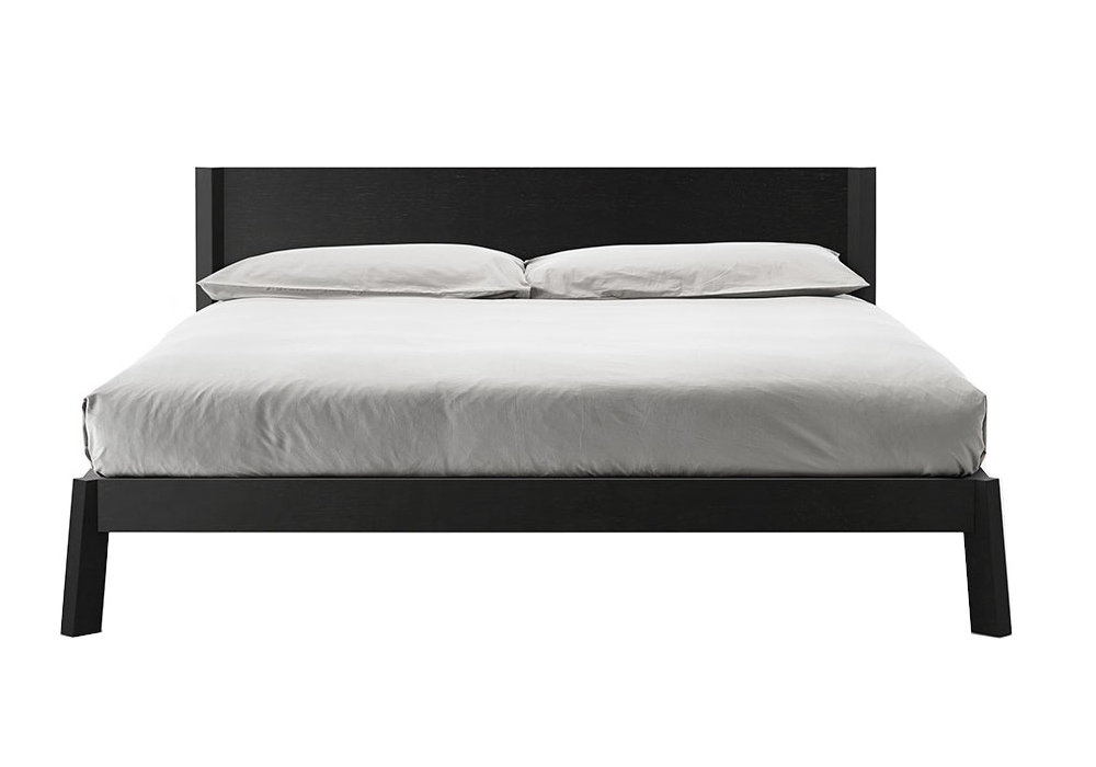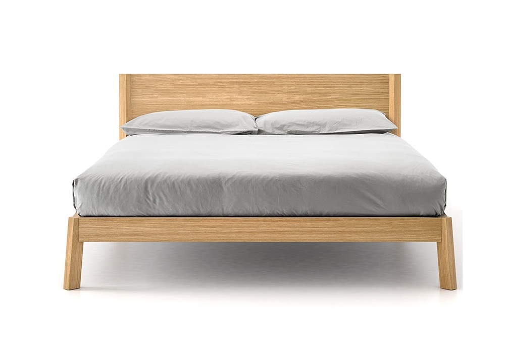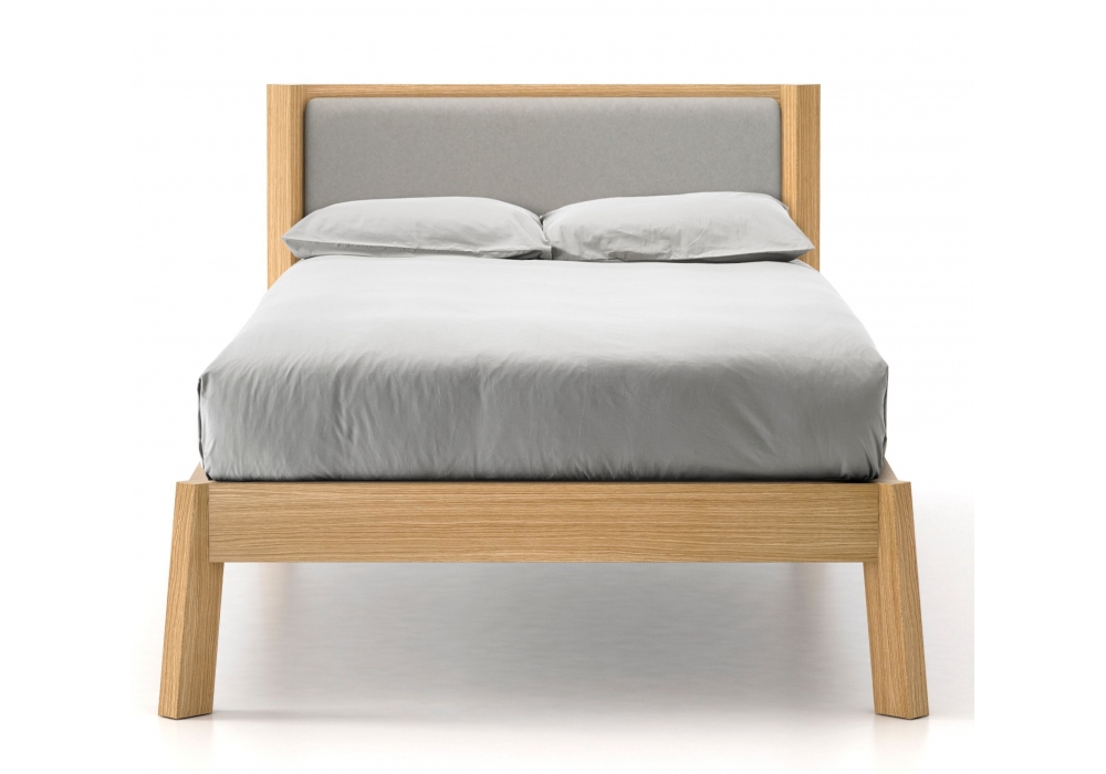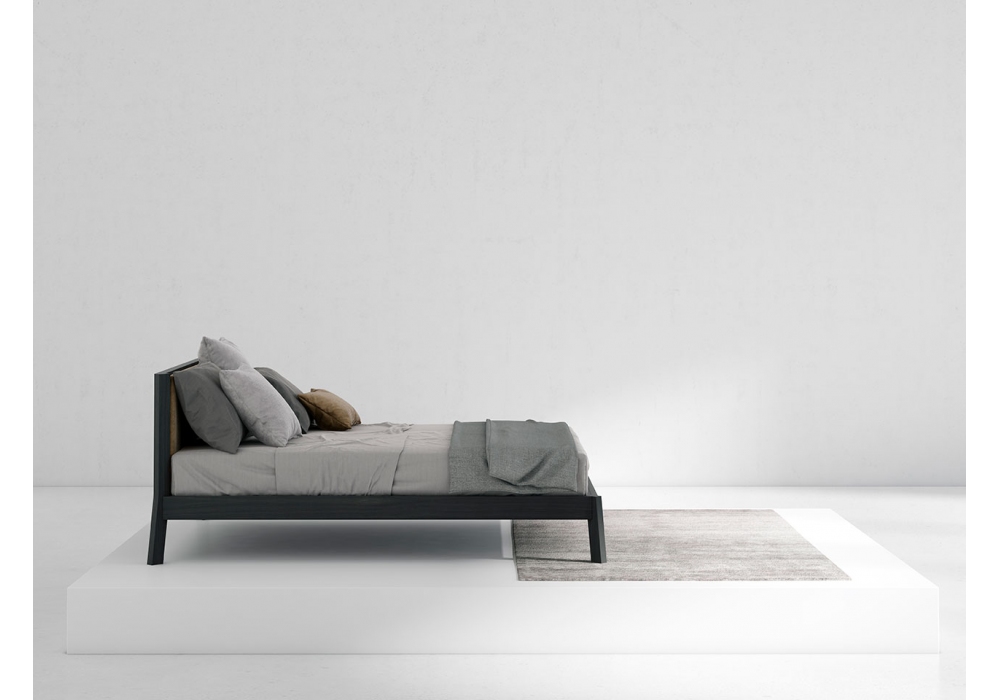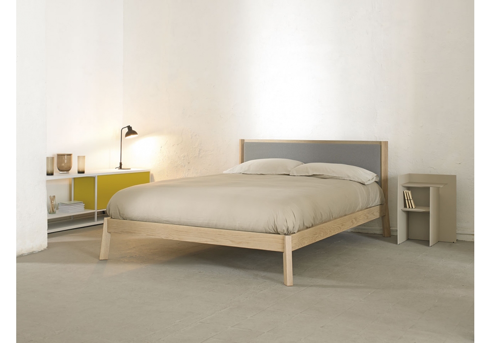 Breda designed by Borja Garcia for Punt is a bed with solid oak wood structure with headboard in oak veneered MDF and upholstered in fabric or leather. Also available without headboard upholstery.