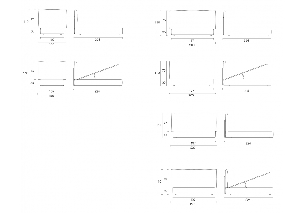| Dimensions | 130 x 224 x H 110 cm; 200 x 224 x H 110 cm; 220 x 224 x H 110 cm. |