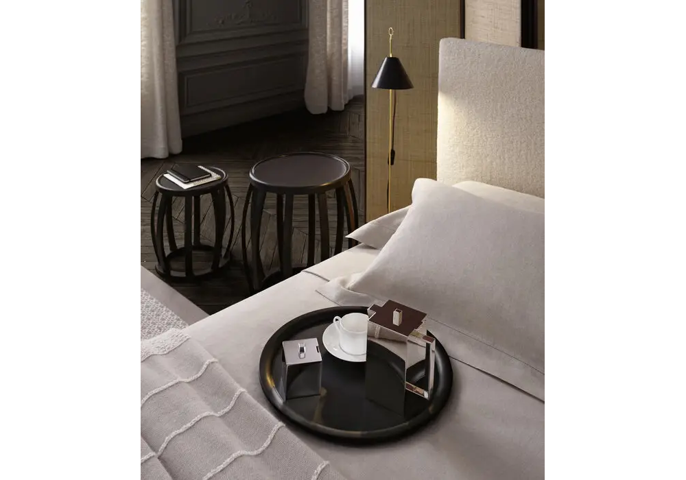 Sileo designed by Antonio Citterio for Maxalto is a bed with lower edge in painted aluminum, available in different finishes. Headboard and bed frame cover in removable fabric or leather. Available in different dimensions.