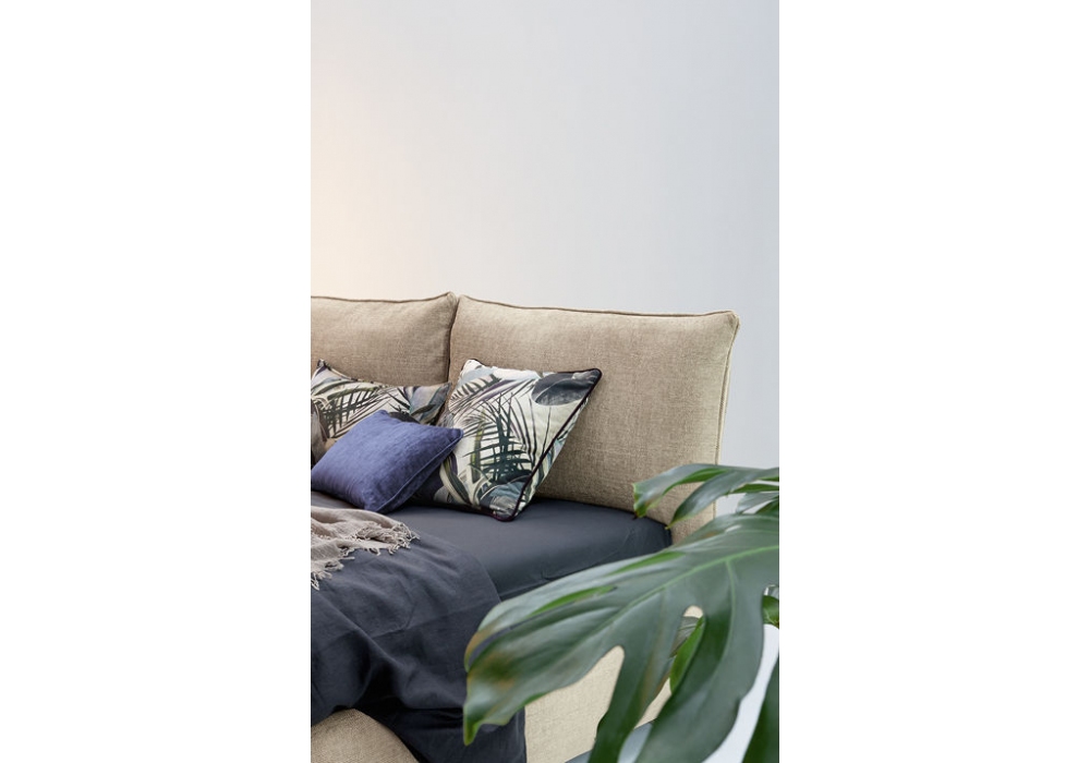 Blanca designed and produced by Twils is an upholstered bed with a 28 cm high bed frame, made in different models and sizes. The cover is removable, in different fabrics and colours. The feet are round inclined (H 10 cm) in mother of pearl.