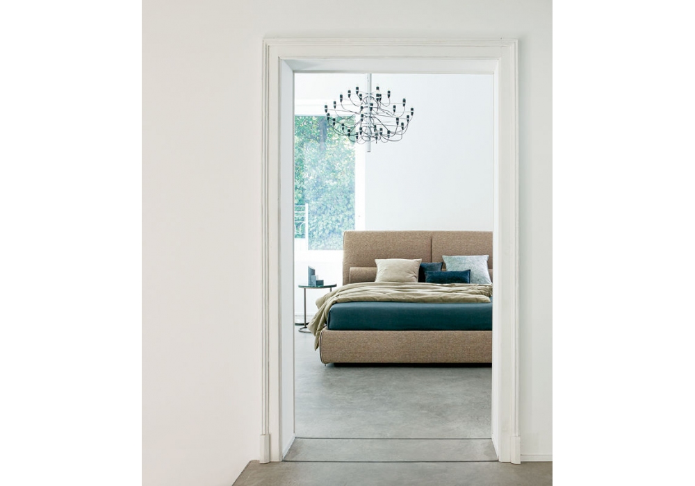 Sail designed by Ludovica and Roberto Palomba for Twils is an upholstered bed with a 15 or 25 cm high bed frame, made in different sizes and models. The removable cover is available in various fabrics and colours. The feet are inclined conical graphite finish (PIE69Z) or inclined round mother-of-pearl color (PIE38).