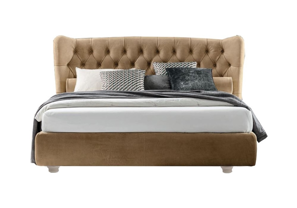 Tommy designed and produced by Twils is an upholstered bed with a 28 cm high bed frame, available in various models and sizes. The non-removable cover is available in numerous fabrics and colours. The feet (PIE28) have a mother-of-pearl finish.