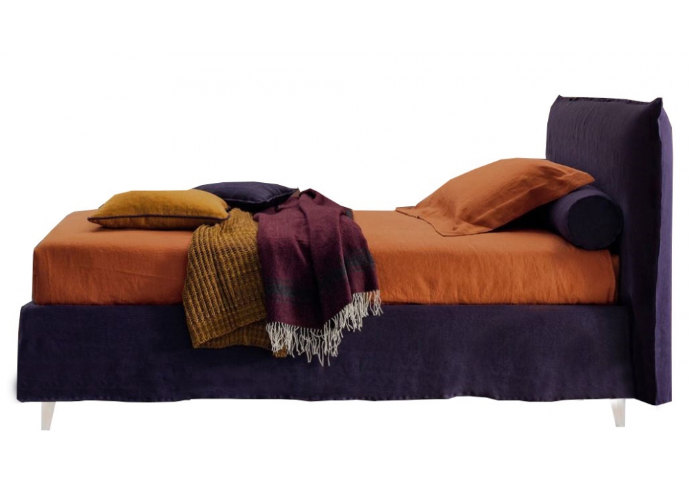 Edo designed and produced by Twils is a single bed with a 28 cm high bed frame. The feet are in mother of pearl (PIE68). Removable cover in different fabrics and colours. Available in different models and sizes. Upon request, the feet can be made in other finishes.