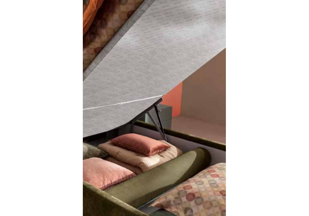 Max Basso Capitonnè designed and produced by Twils is a single bed with a 28 cm high bed frame. The feet are in mother of pearl (PIE3D). Removable cover in different fabrics and colours. Available in different models and sizes. Upon request, the feet can be made in other finishes.