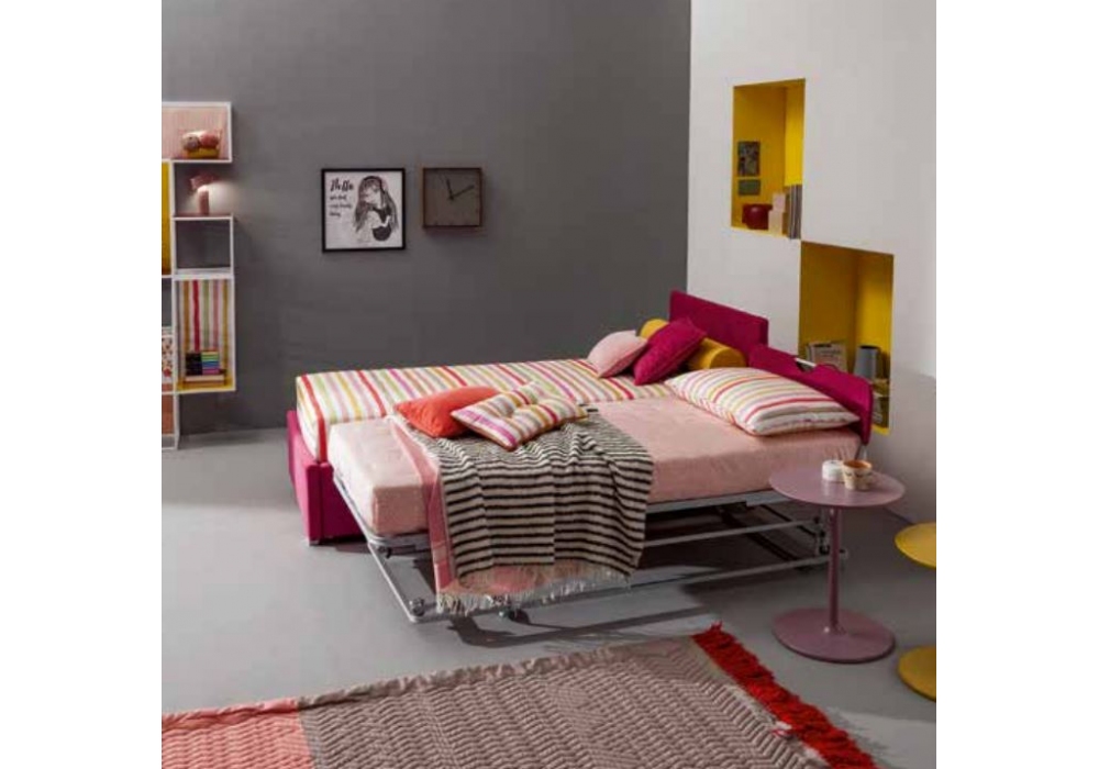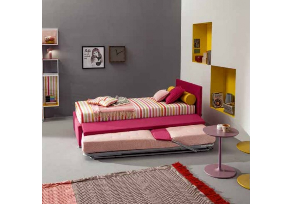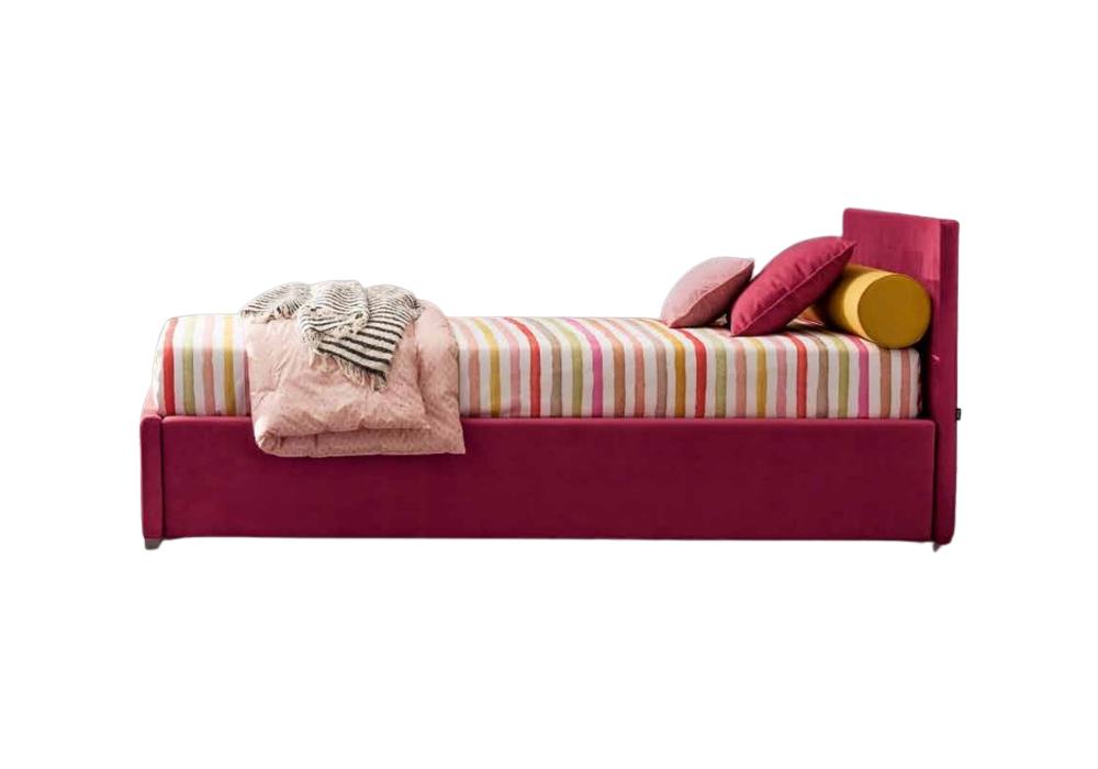 Max Mod. 2 designed and produced by Twils is a pull-out single bed: it hides a second base that joins the main one. The removable cover is available in various fabrics and colours. Upon request, the standard foot (PIE12M) can be made in other finishes.