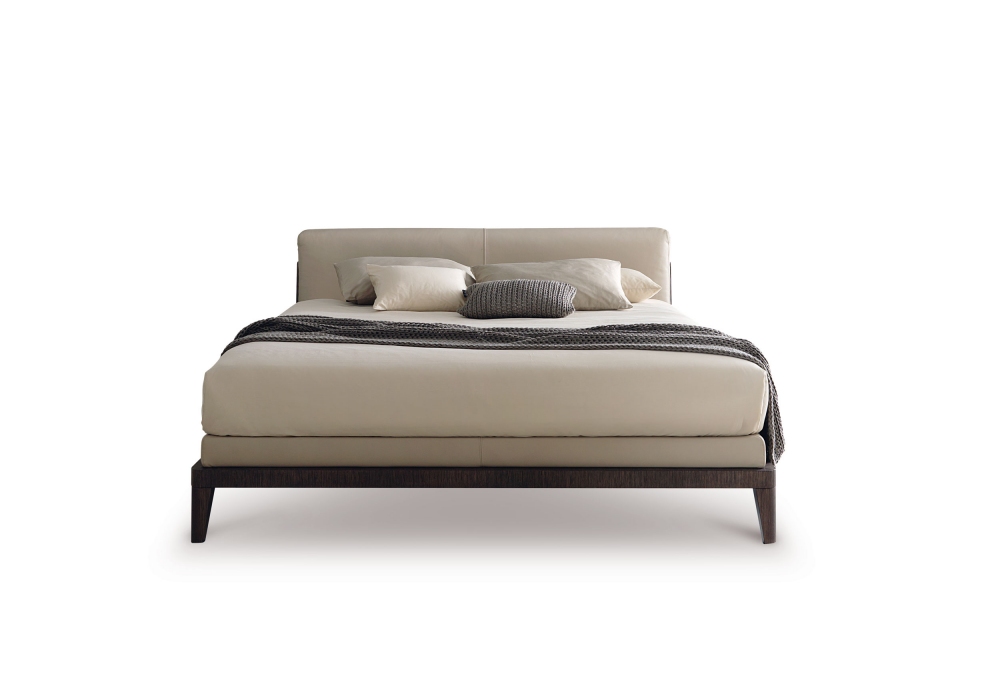 Assuan designed by Ferruccio Laviani for MisuraEmme is a bed with dedicated fixed bed base made with wooden structure and headboard cushions in differentiated density polyurethane foam covered with synthetic wadding and coupled with velveteen. Removable cover in fabric, eco-leather or leather, with zip.