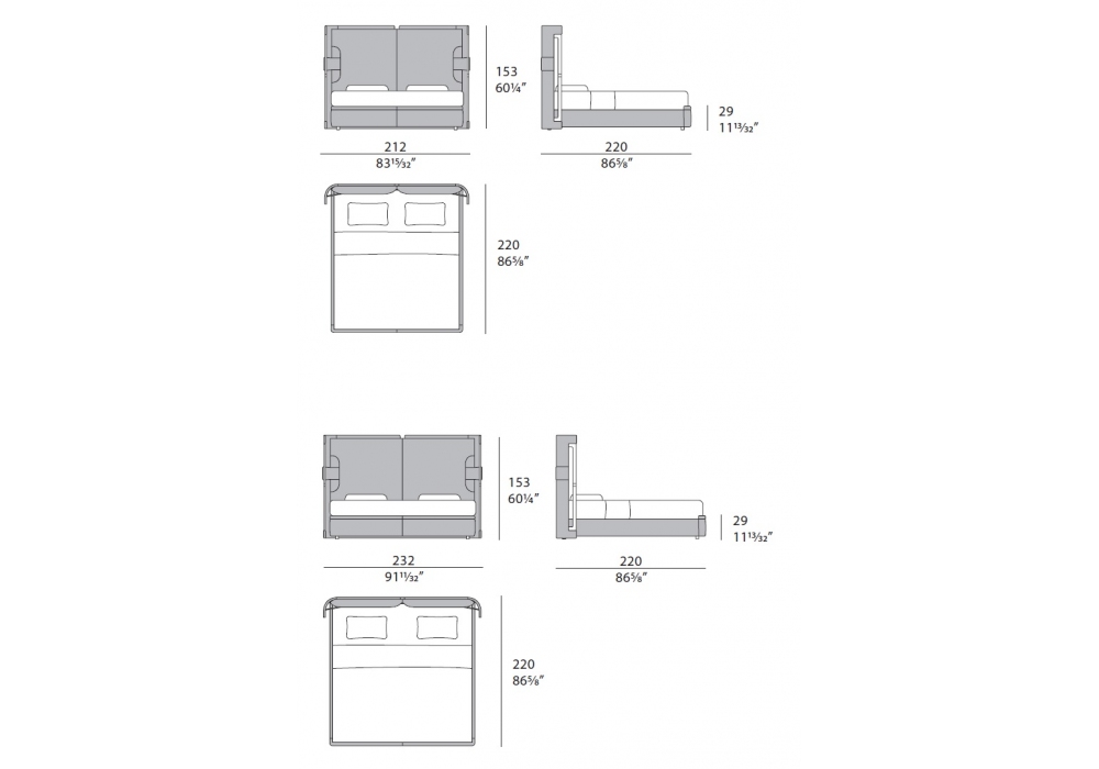 | Dimensions | 212 x 220 x H 153 cm (180 x 200 cm); 232 x 220 x H 153 cm (200 x 200 cm). |