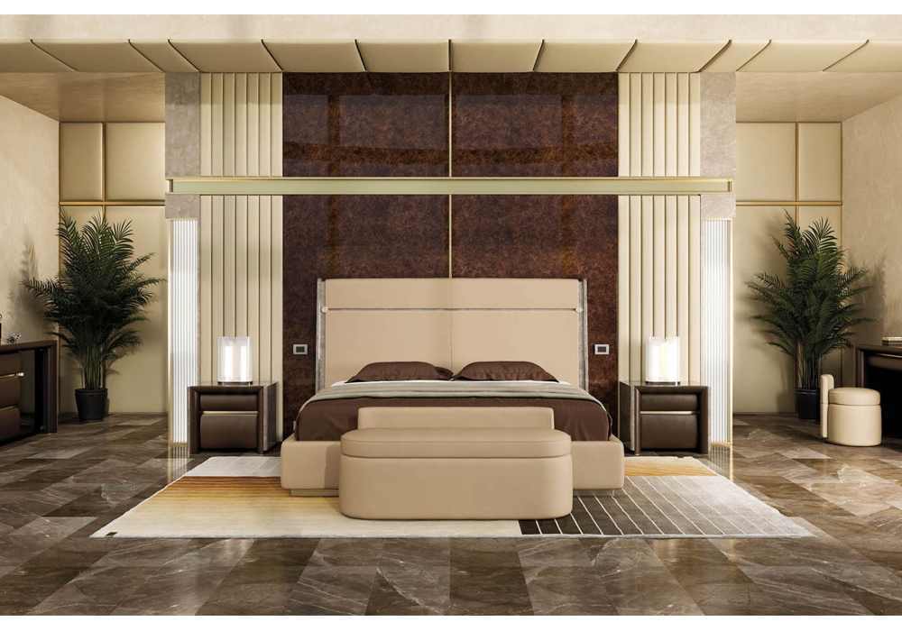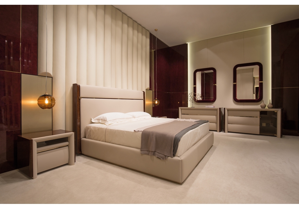 Madison designed by Andrea Bonini for Turri is a bed with structure in solid wood and plywood with hand-decorated glossy polyester finish. Padding in multi-density polyurethane foam with non-removable covers in different leathers or fabrics.