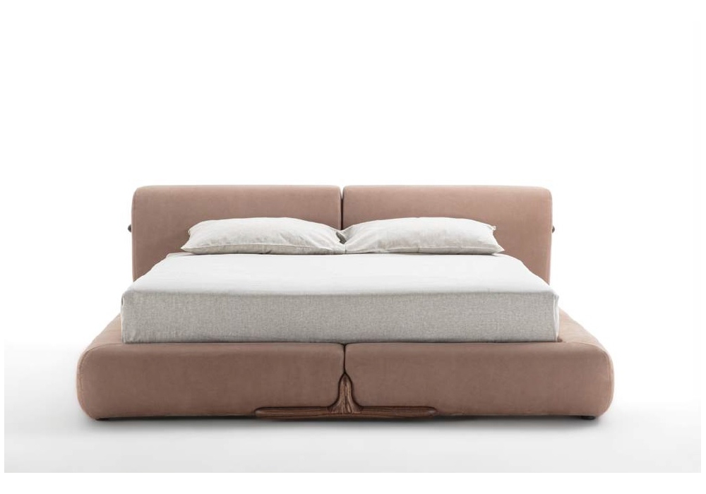 Klem designed by Giuseppe Viganò for Porada is a bed with birch plywood structure with removable fabric or leather covering. Structural details in solid canaletta walnut.