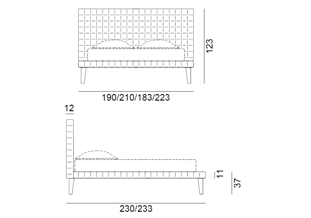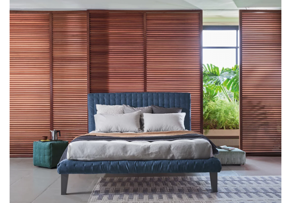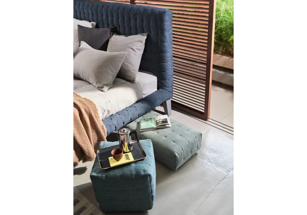 Dot designed by Paola Navone for Gervasoni is a padded bed with removable cover with removable bed frame. Upholstery in quilted fabric with matelassé effect, velcro finish with internal stitching and solid wood feet. Base and mattress excluded. Available in different finishes and dimensions.