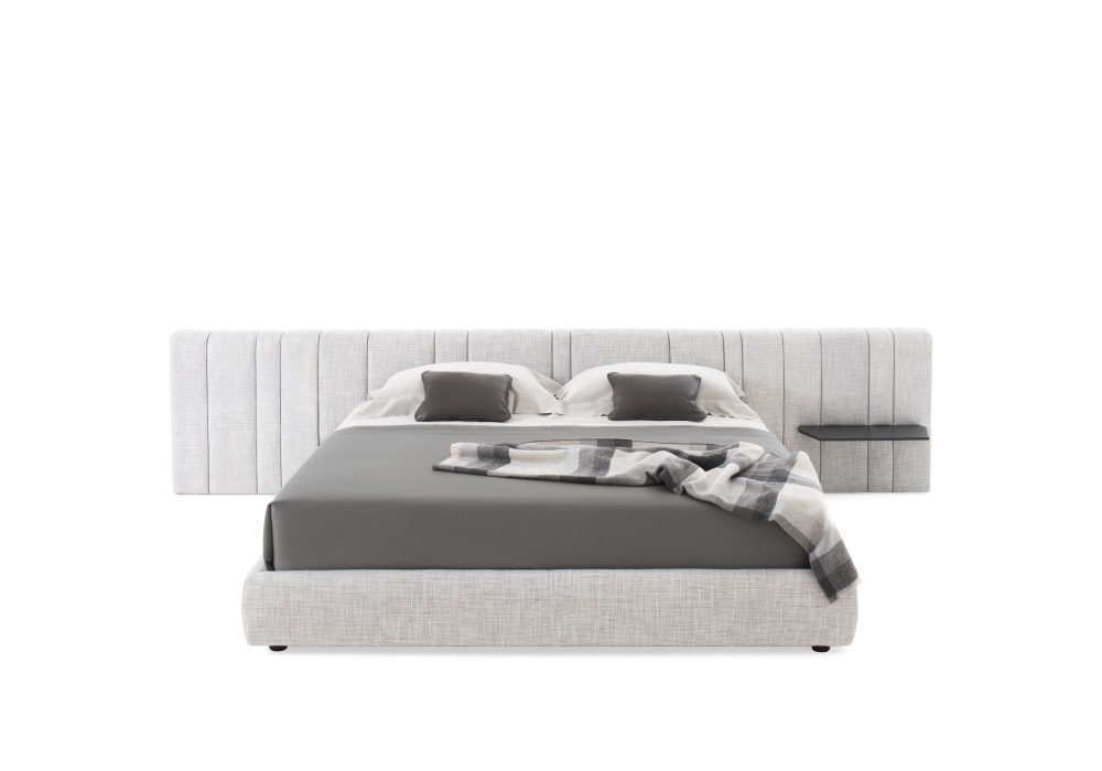 Karphi Nap designed by Carlo Colombo for Giorgetti is a bed with internal structure in plywood and foam rubber padding. Bed frame and headboard covered in fabric or leather, even different ones. Possibility of adding bedside tables or shelves with or without LEDs. Customizable configuration. The bed is also available in different sizes.