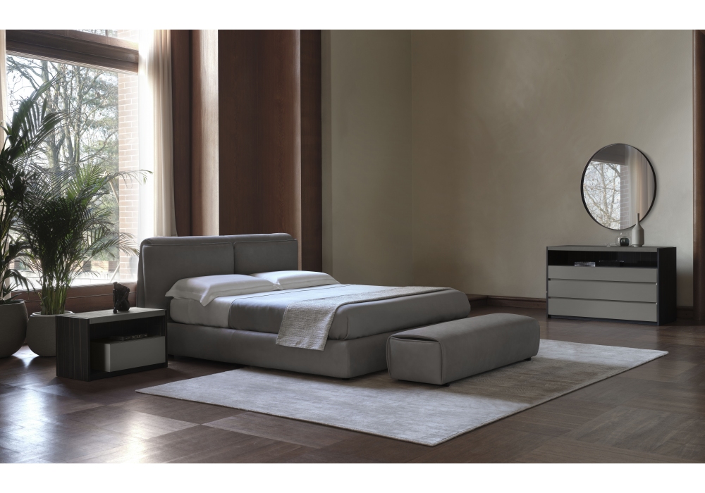 Pillow designed by Corrado Dotti for Conte Casa is a bed with fabric or leather upholstery. Available in different finishes and dimensions.