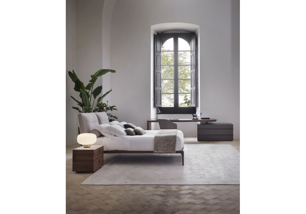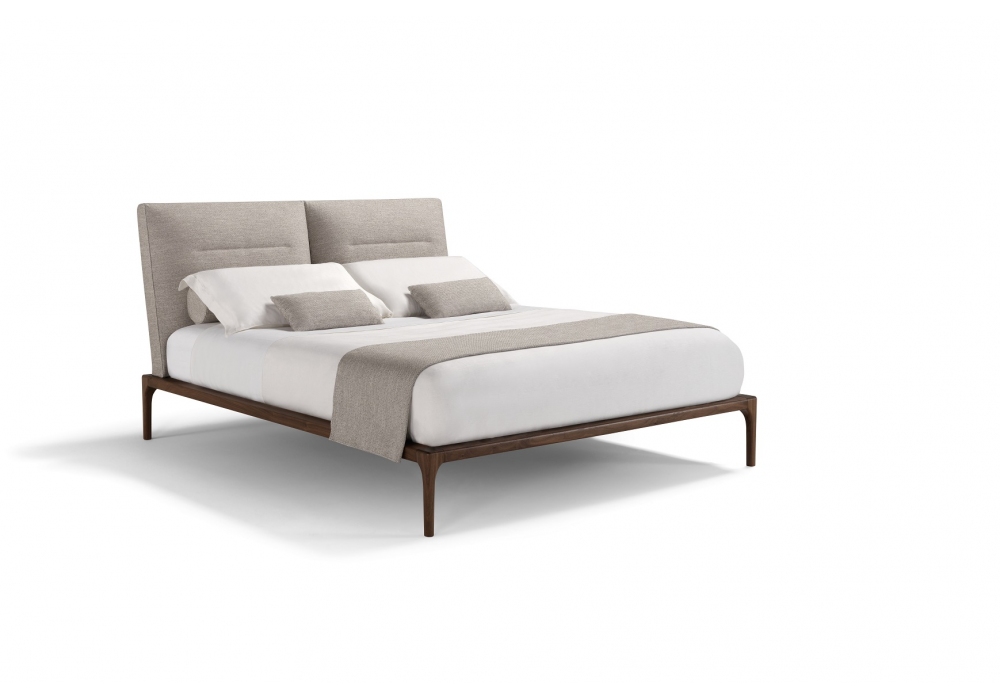 Kensington designed by Joe Garzone for Conte Casa is a bed with a solid wood frame, polyurethane foam padding and fabric or leather upholstery. Available in different finishes and dimensions.