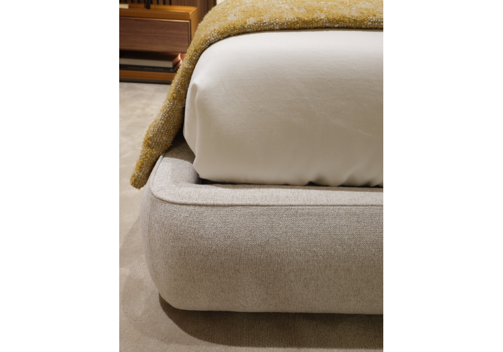 Victor Liscio designed by Mauro Lipparini for Conte Casa is a bed with a solid wood frame, polyurethane foam padding and fabric or leather upholstery. Available in different finishes and dimensions.