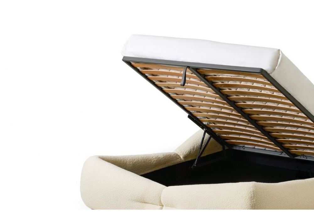 Mon-Nid designed by Patricia Urquiola for Cassina is a bed entirely padded with recycled polyester fiber wadding. Fabric upholstery. Also available with a container system equipped with nets and slats.