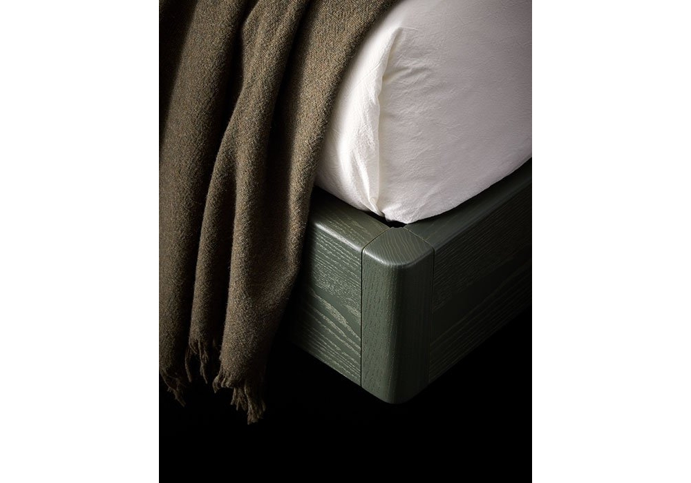 Awase Soft designed by Studio Omi Tahara for Bolzan is a bed made of ash wood - available in different finishes. Covered headboard panel, not removable. Standard bed base, available only in matte black lacquer finish.