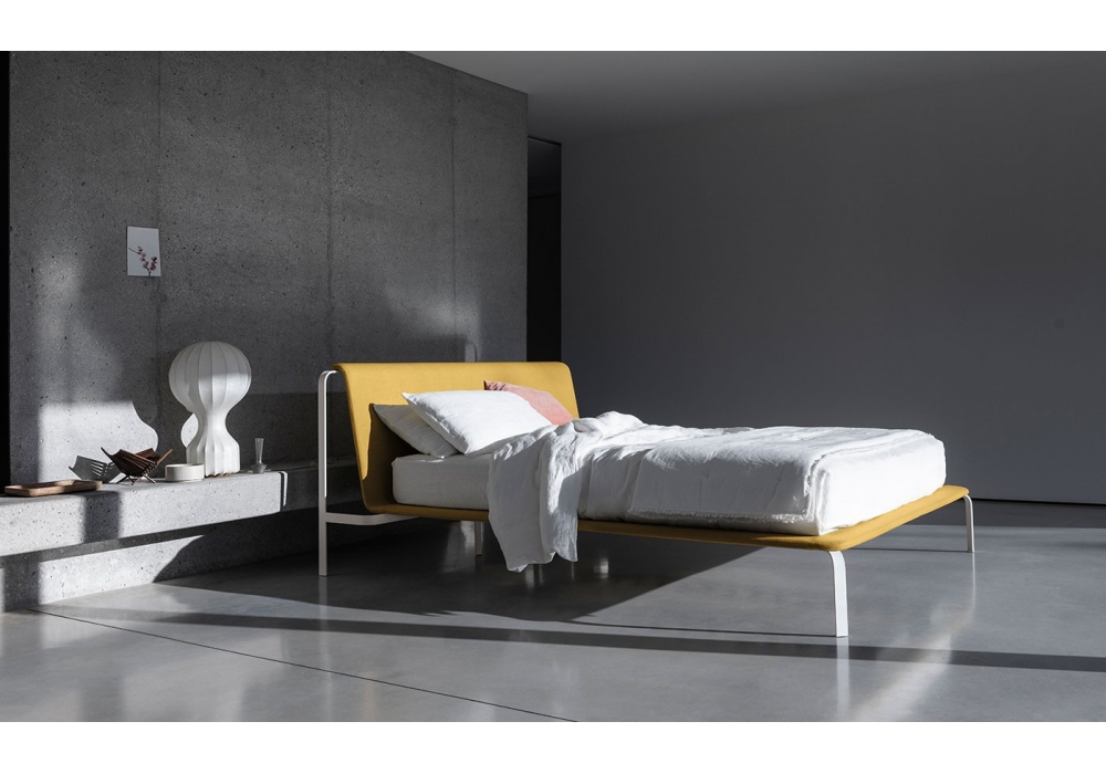 Bend designed by Zanellato/Bortotto for Bolzan is a bed made of iron - available in the following finishings: matt lacquered RAL 5008 grey blue, 8019 grey brown, 3005 wine red, 7044 silk grey, 6020 chrome green, 9011 graphite black, 9010 pure white, 1013 pearl white. Completely removable cover.