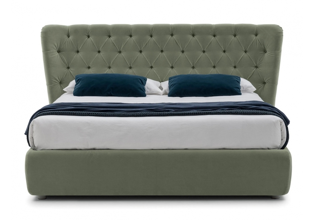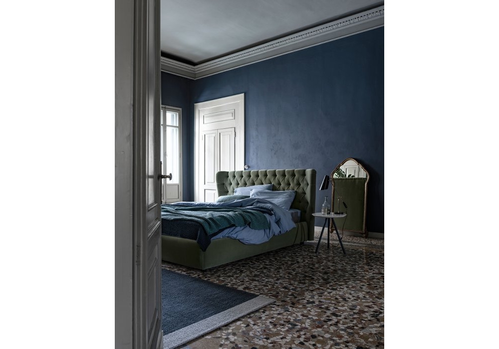 Selene designed by Bolzan Lab is an upholstered bed with storage unit and headboard with non-removable cover. Pleasant reinterpretation of the great classics of night furniture, Selene knows how to be sophisticated and welcoming at the same time. The large padded headboard with tufted seams, handcrafted, is a citation of ancient atmospheres that become again in vogue. Available in different sizes.