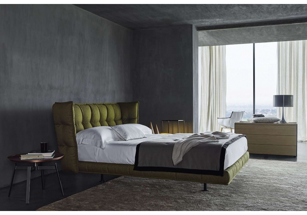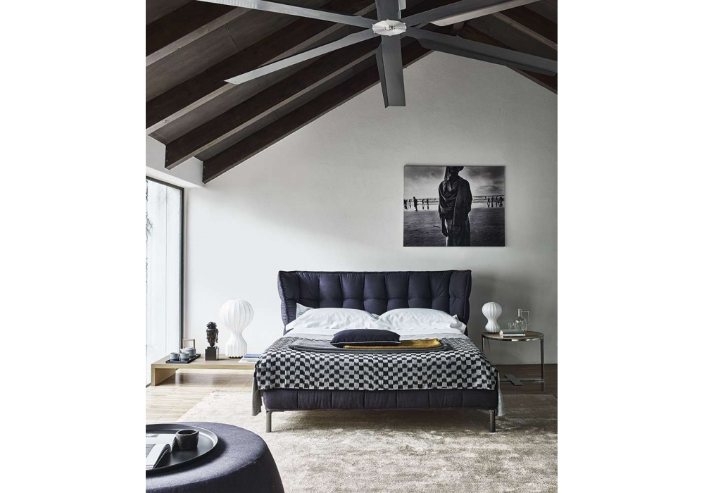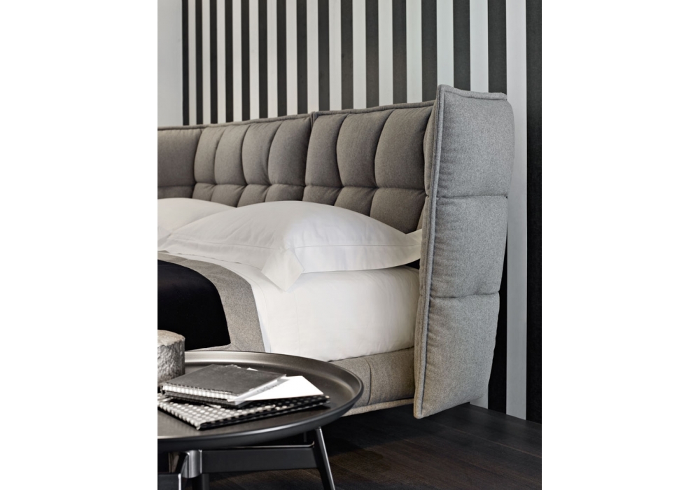 Husk designed by Patricia Urquiola for B&B Italia is a bed with an internal frame in tubular steel and steel profiles and padding in Bayfit® polyurethane foam. Upholstery in different fabrics or leathers. Feet in die-cast aluminum and sheet steel with tips in thermoplastic material.