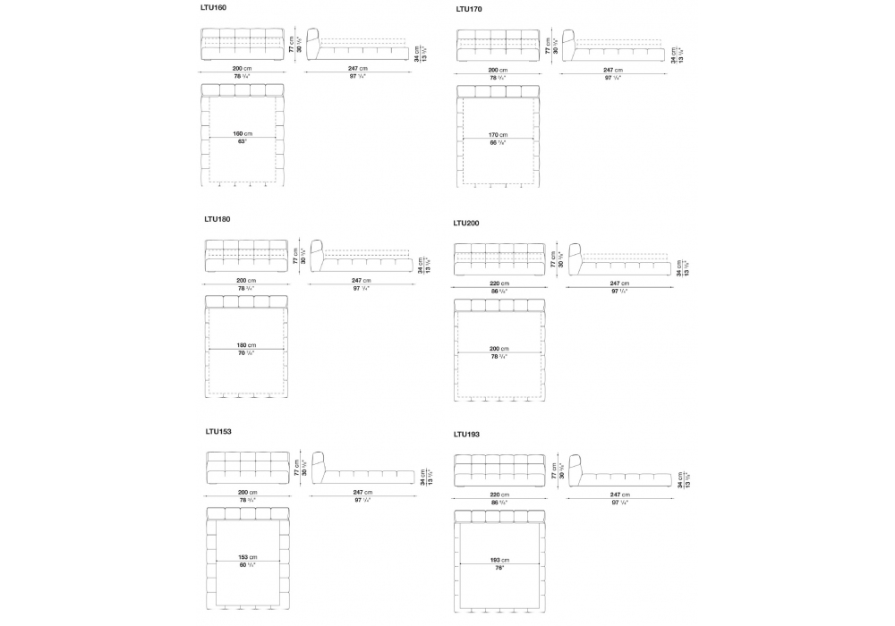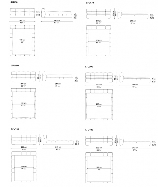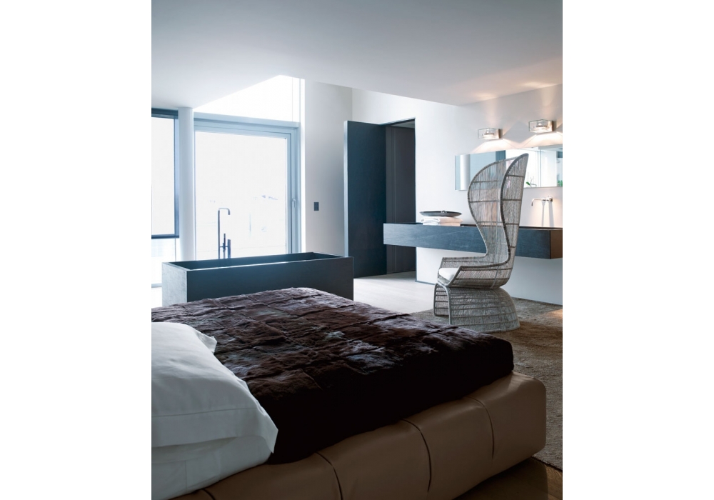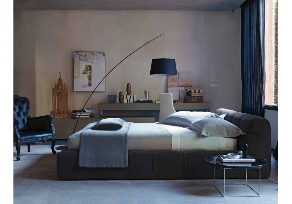 Tufty-Bed designed by Patricia Urquiola for B&B Italia is a bed with an internal frame in tubular steel and steel profiles with Bayfit® polyurethane foam padding and upholstery in different fabrics or leathers. Feet in solid oak. Also available on request in the version with storage.