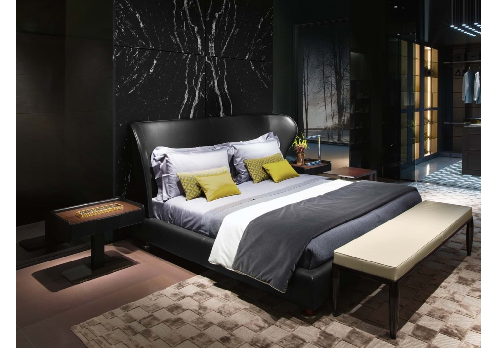 Rea is a bed designed by Chi Wing Lo for Giorgetti. A series of double beds with the headboard frame in rigid compact polyurethane, cold-foam flexible polyurethane and poplar plywood. The bed base is in ultralight planked wood covered with fibre and corner reinforcements in painted metal.