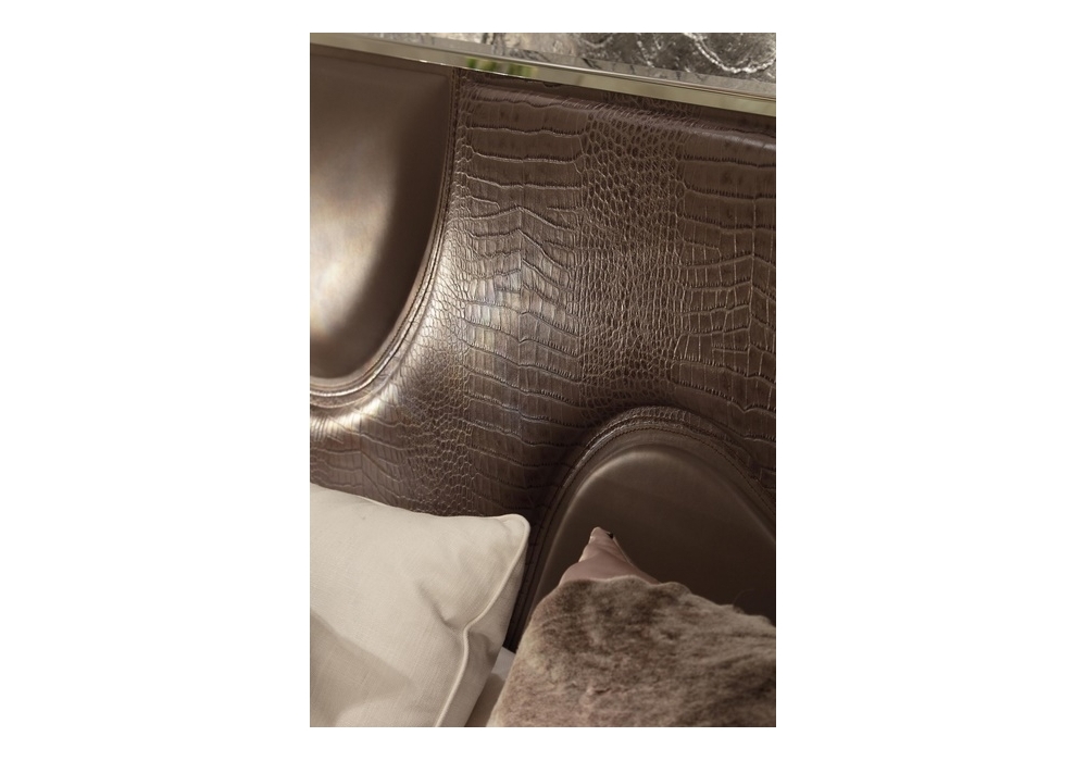 Riflesso designed by Rugiano is a bed available with leather covering in different finishes. Available in various sizes and in the version with storage box.