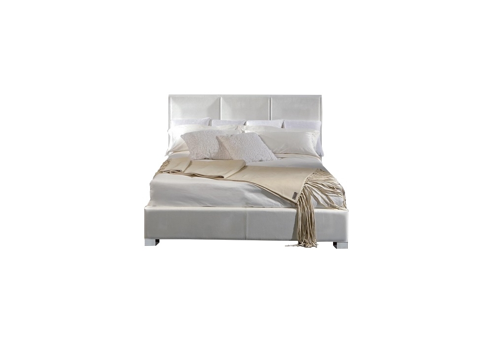 Migaori Low designed by Rugiano is a bed with high headboard available with leather upholstery in different finishes. Available in various sizes and in the version with storage box. Bronzed brass or chrome details.