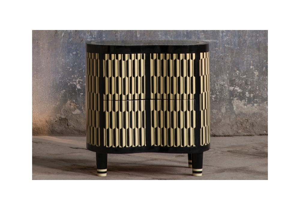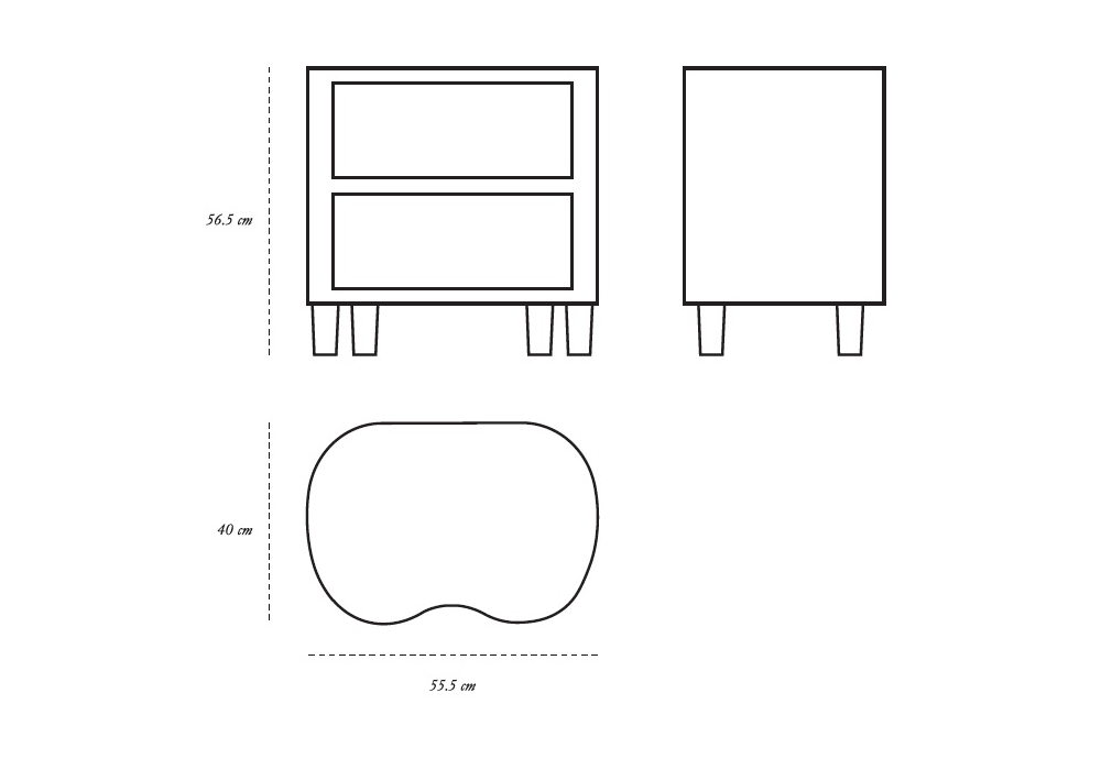The Kid designed by Matteo Cibic for Scarlet Splendor is a bedside table made of MDF, plywood and teak wood, with resin inlay.