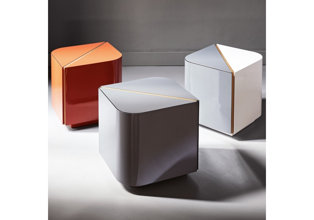 Dimitri 45 designed by Andrea Parisio for Meridiani is a is a bedside cabinet with wooden frame. Available in matt, glossy lacquer or two-colored matt or glossy lacquer finish. Wooden inserts in bronzed brass lacquer.