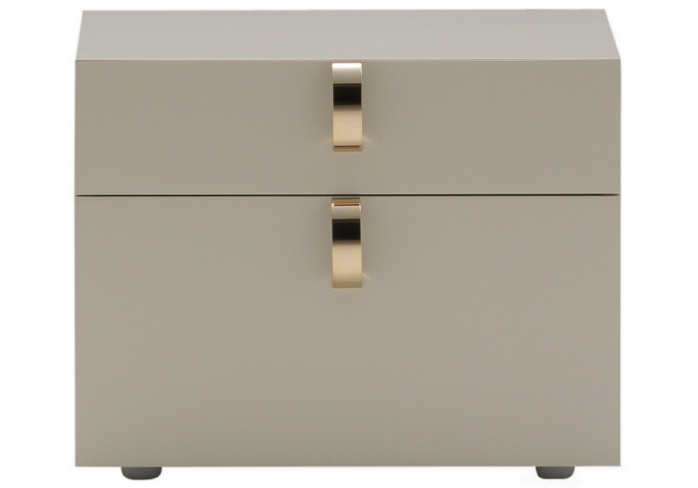 Splendor designed by Rodolfo Dordoni for Flou is a bedside table in glossy cream or matt greige lacquered finish. The handles are available in dipped gold, black nickel or matt burnished. The series also consisting of a chest of drawers and a tallboy.