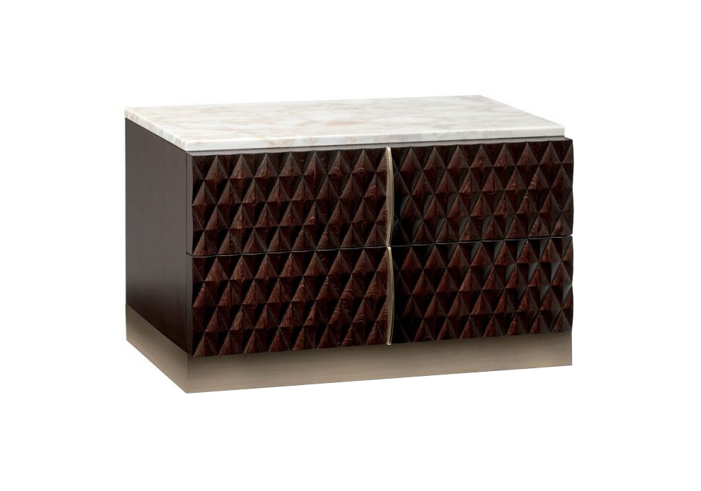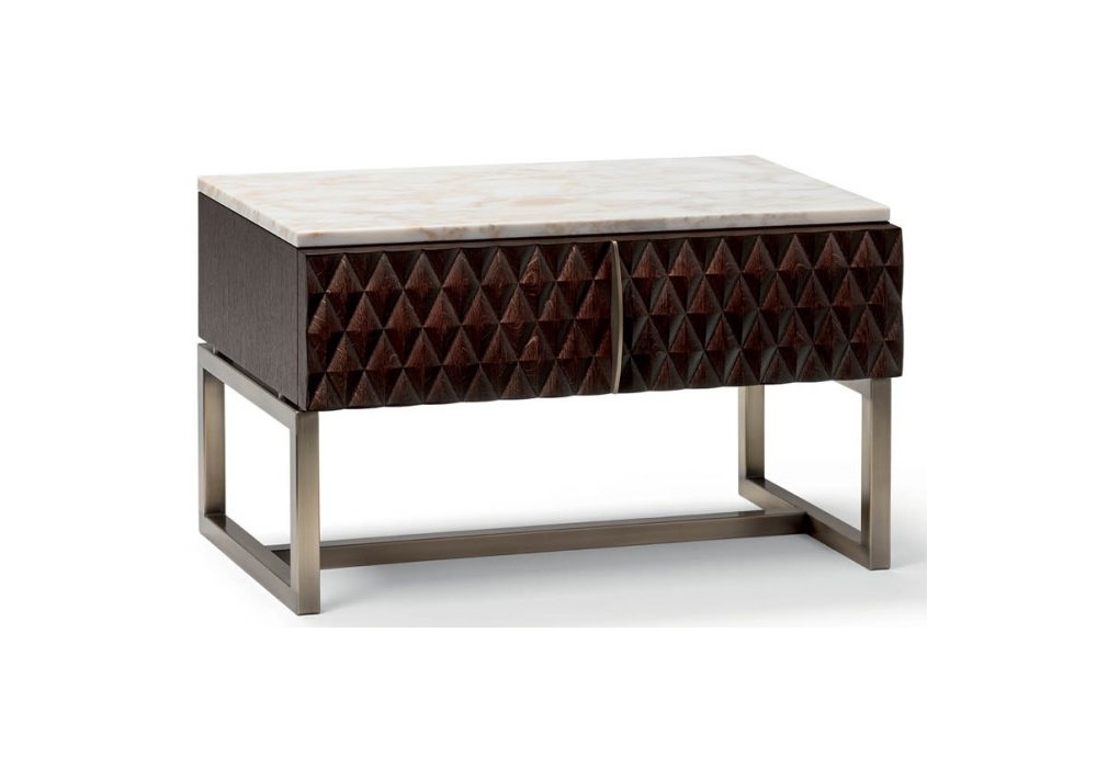 Victor designed by Castello Lagravinese Studio for Opera Contemporary is a bedside cabinet with marble top, available in different finishes and metal base. Also available in 2 versions: with 1 or 2 drawers.