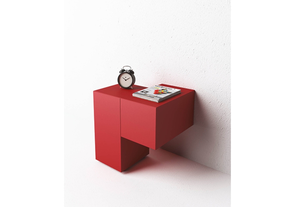 Formosa Appoggiata designed by DSH for Minotti Italia is a wooden bedside table to be fixed to the wall composed of a hinged door and an external drawer, adjustable feet. Available in embossed finish in different colours and also in gold or silver leaf finish. Opening available from right or left.