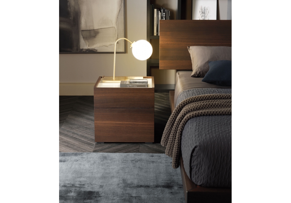 Cube designed by MisuraEmme is a bedside table that combines essences, lacquers and glass. The top is slightly lower than the structure and forms a refined support tray.