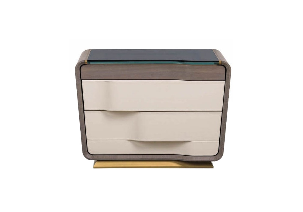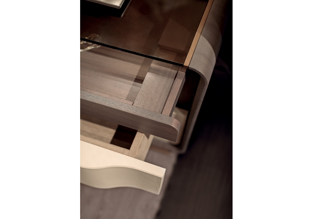 Melting Light designed by Frank Jiang for Turri is a bedside table with structure in MDF, plywood, solid walnut and walnut veneered particleboard panels. The top is made of bronzed glass. There are two drawers with microfibre lining. As an option, LED lighting can be added.