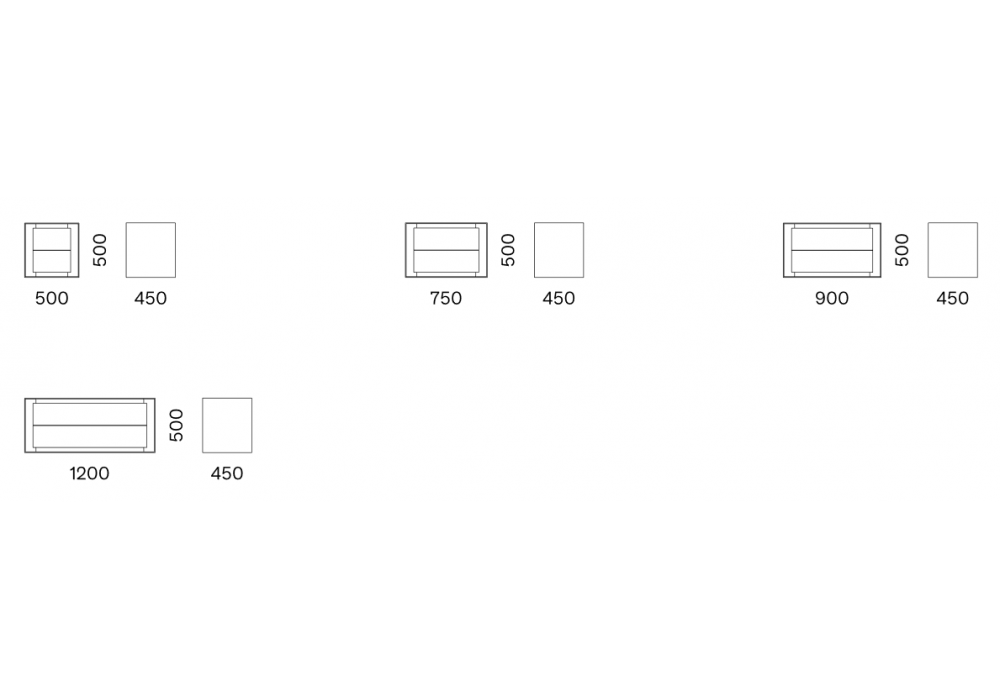 | Dimensions | 50 x 45 x H 50 cm; 75 x 45 x H 50 cm; 90 x 45 x H 50 cm; 120 x 45 x H 50 cm. |