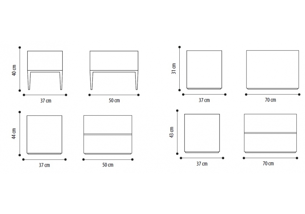Avenue designed by Joe Garzone for Conte Casa is a bedside table made with a structure in wood veneered in different essences or glossy or matt lacquered wood, feet in painted die-cast metal and interior drawers in veneered wood, leather effect. Available in different finishes and dimensions.