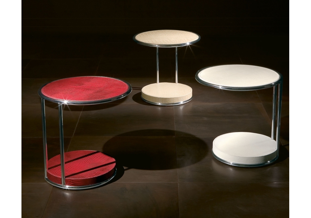 Oblò designed by Rugiano is a bedside table with leather covering and details in steel or bronze.