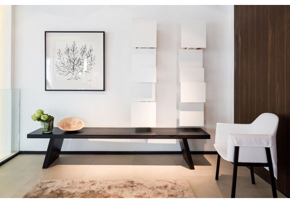 Groove is a bench designed by Piero Lissoni for Porro. The board Groove in solid wood stands out for its simplicity, balance and symmetry. The seat consists of an horizontal table, raised on two supporting bending bases, fitted by a fixed joint.