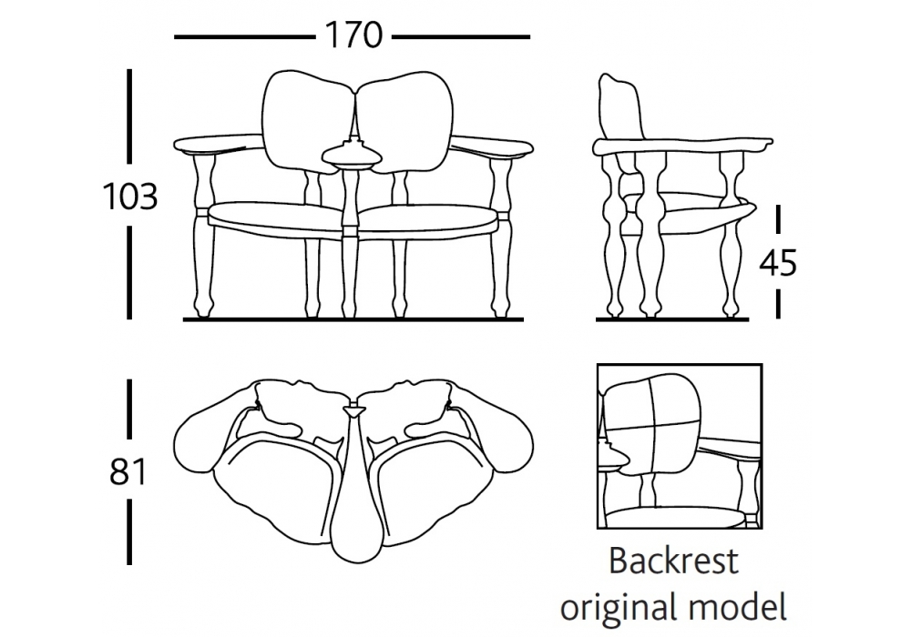 Battlò designed by Antoni Gaudí for BD Barcelona Design is a bench with a structure in varnished solid oak or natural waxed solid oak.