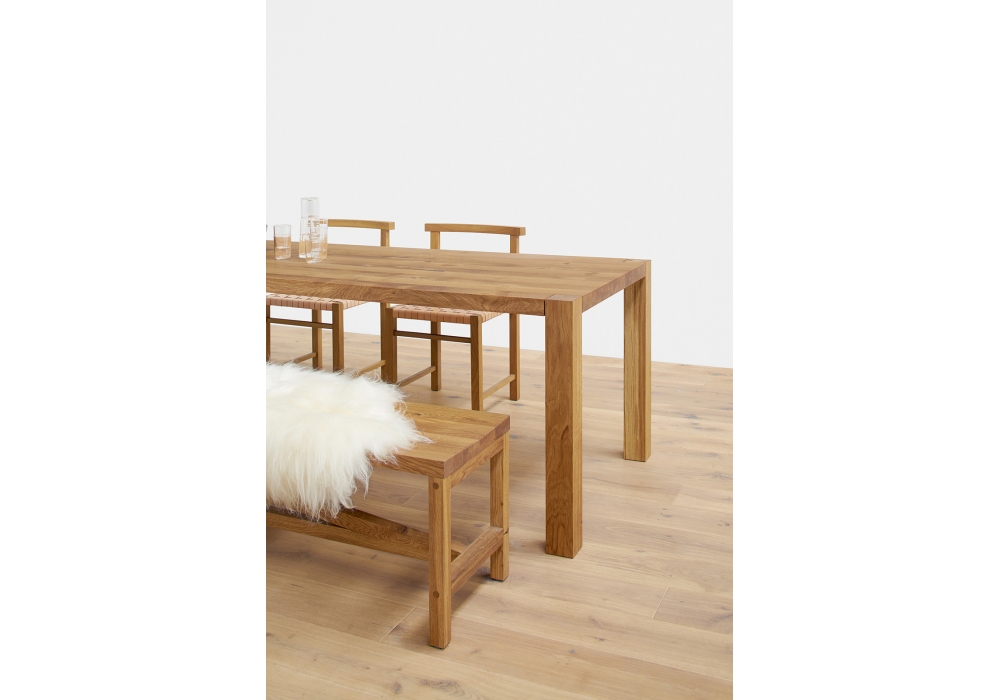 BE05 Sitz designed by Jörg Schellmann for E15 is a bench realized in solid wood. The signature diagonal bar dominates the character of the solid wood bench, highlighting the casual and stable construction. Available in oak and in seven lenghts.
