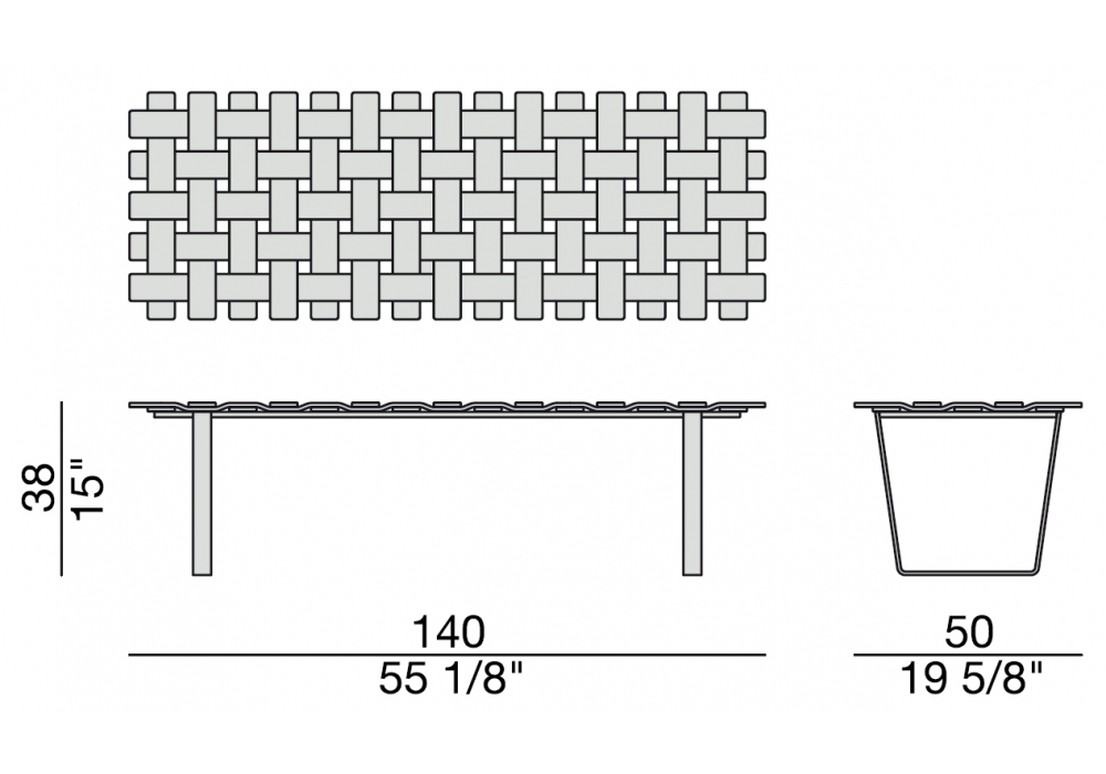 Belt designed by T. Colzani for Porada is a rectangular bench in solid canaletta walnut and metal base. The braided effect makes it original and perfect for modern environments.