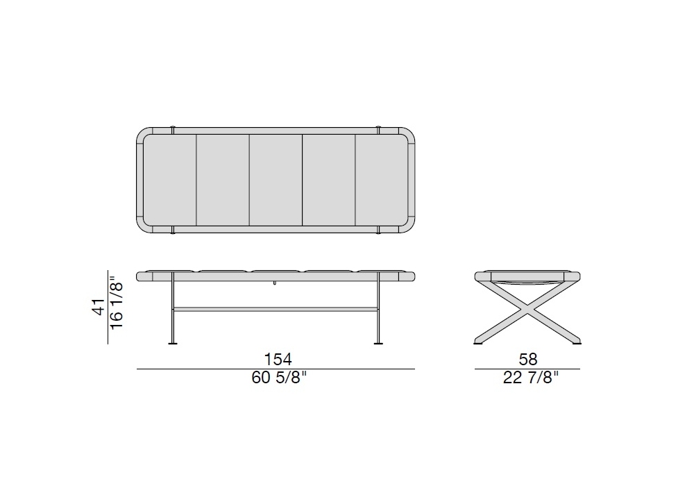 Axxia designed by T. Colzani for Porada is a bench with metal base in Bronzoro finish. Structure in Canaletta walnut or closed pore matt lacquer. The seat upholstery is available in leather or fabric.